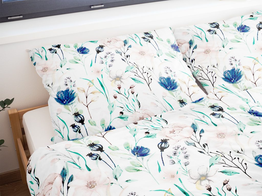 Povlečení z hladké bavlny s jemným květinovým vzorem spojuje tradiční českou kvalitu a módní design, který oživí každou ložnici. Precizní potisk materiálu spolu s pevnou plošnou hmotností zajišťuje, že barvy zůstanou stálé i po mnoha vypráních. Povlečení je ušité v České republice ze 100% vysrážené a měkčené bavlny, která je odolná a příjemná na dotek. Praktické zapínání na zip zaručuje rychlou a pohodlnou manipulaci.