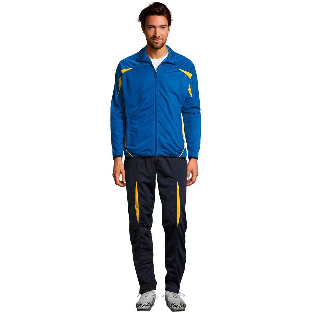 Moderní sportovní tepláková souprava v klasickém unisex střihu se skládá ze sportovních kalhot a sportovní bundy. Bunda se zapíná na zip, má pružný pas i manžety na rukávech a 2 kapsy na zip. na bocích a rukávech jsou prodyšné síťované vsadky, které zajišťují dobré odvětrání a zabraňují nadměrnému…