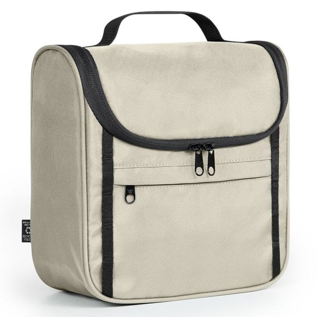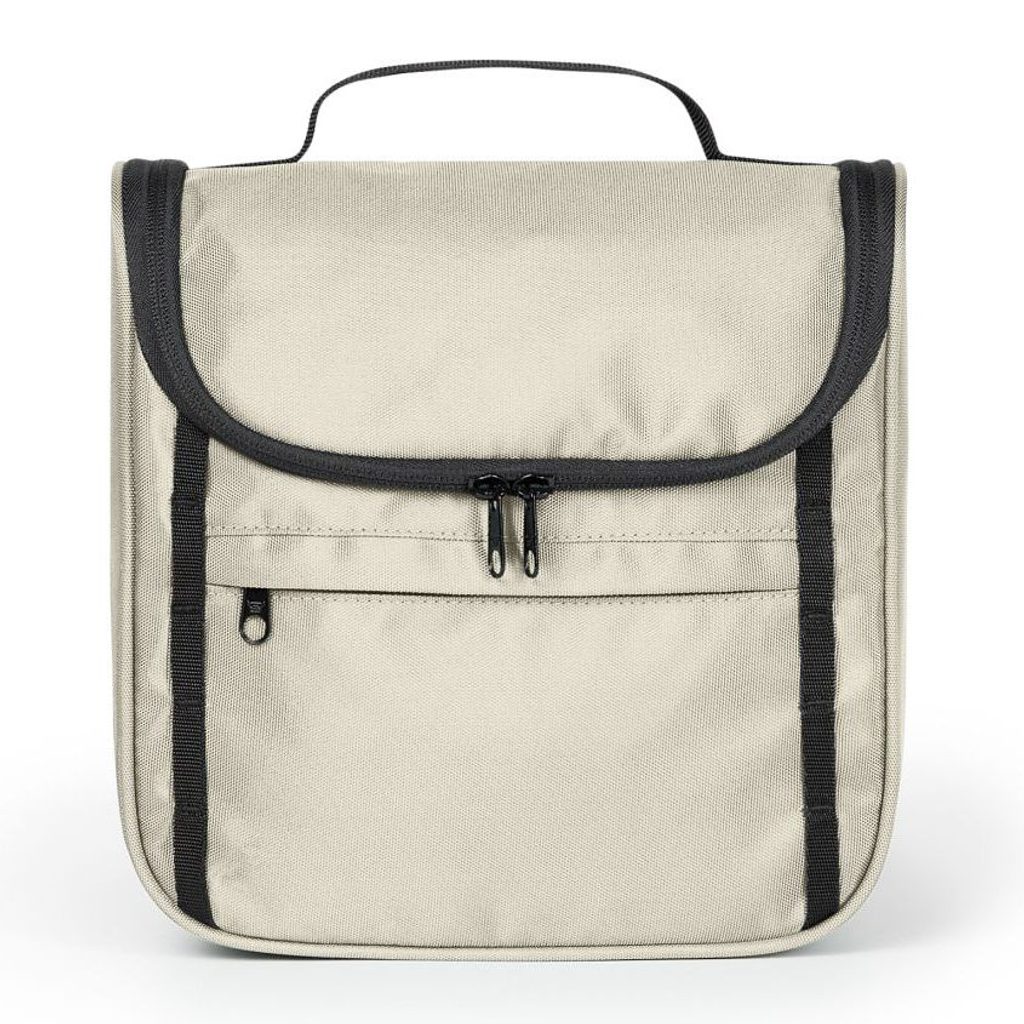 Vnější strana je vyrobená z recyklované textilie. Vpředu najdete kapsu na zip, do které můžete uložit věci, které potřebujete mít hned po ruce – například kartáček na zuby, holicí strojek nebo kapesníčky. Hlavní prostor je snadno přístupný díky dvoucestnému zipu, který lze otevřít ze tří stran, takže si pohodlně najdete vše, co potřebujete. Uvnitř jsou čtyři síťované kapsy na drobnosti a další kapsa na zip je ve víku.