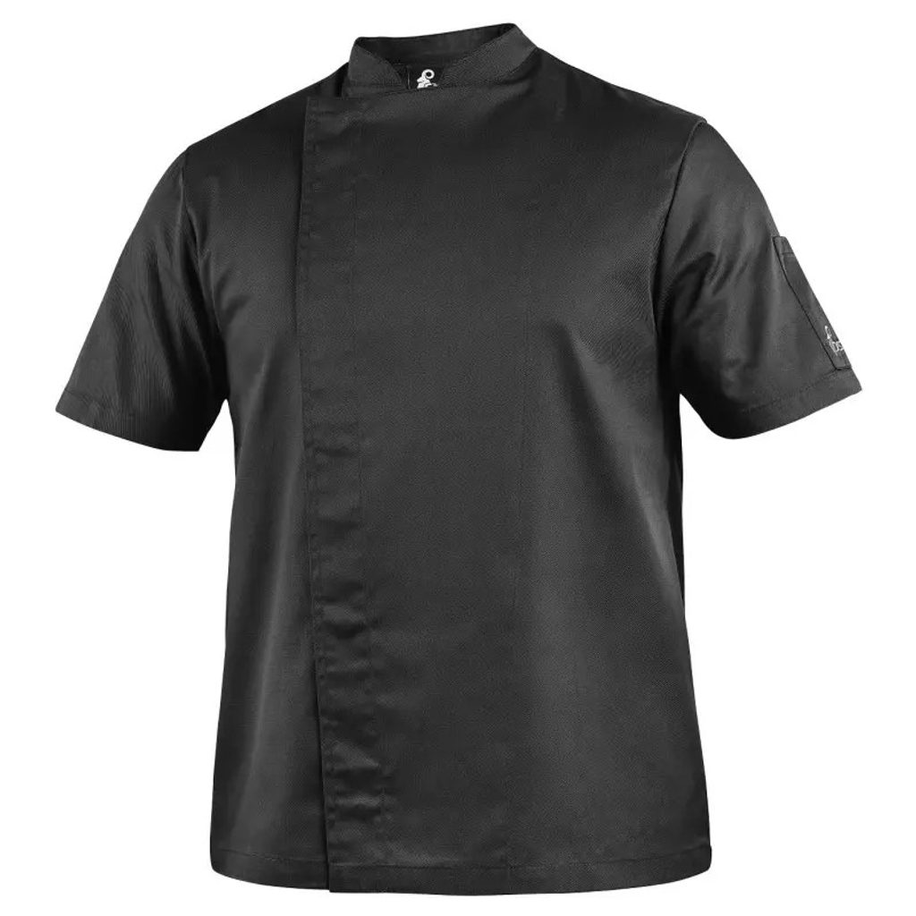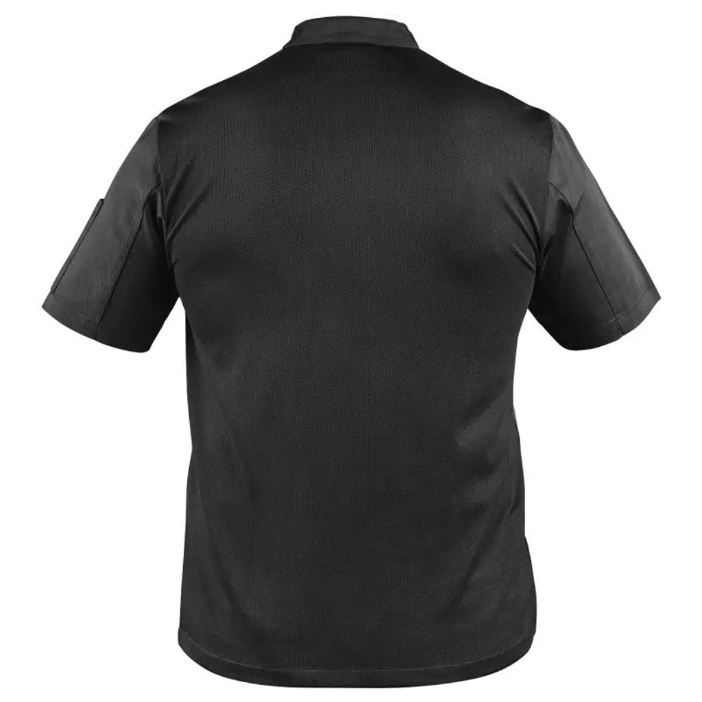 Zadní panel je vyroben z lehké síťoviny, která zvyšuje odvětrávání a podporuje proudění vzduchu během práce v kuchyni i při dlouhých směnách. Zapínání na druky umožňuje rychlé a pohodlné oblékání i svlékání. Na levém rukávu je umístěna praktická malá kapsička, vhodná například na tužku nebo drobné pracovní pomůcky.