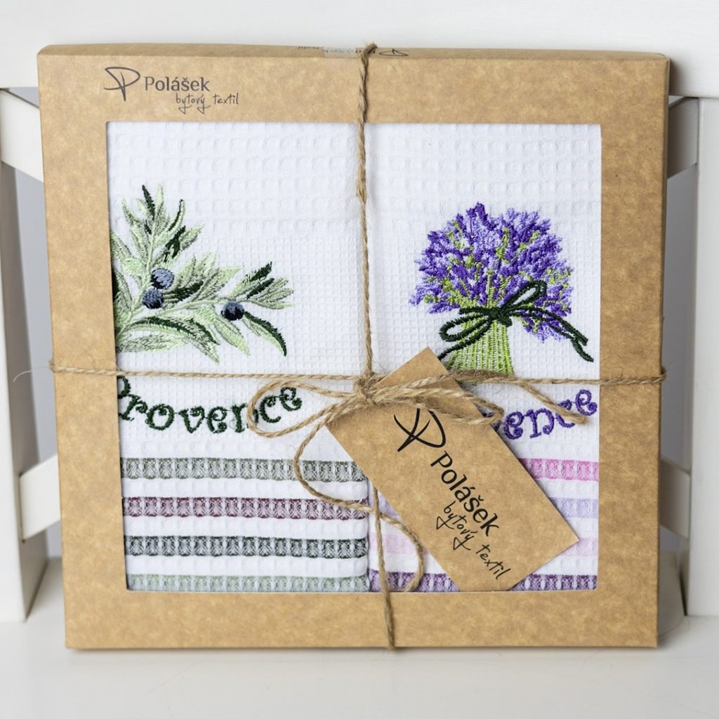 Vyšívaná vaflová utěrka s motivem - 2 ks Provence č. 4