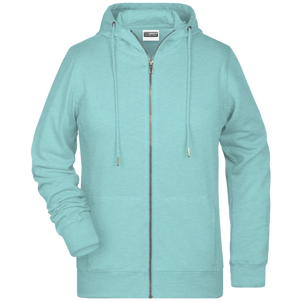Příjemná dámská mikina se zapínáním na zip a kapucí je vyrobená z velmi kvalitního úpletu s vysokým podílem biobavlny. Kapuce je dvouvrstvá a dá se stáhnout šňůrkou. Mikina má ozdobné švy, kapsy typu klokanka a velmi kvalitní kovový zip značky YKK. Manžety rukávů obsahují příměs elastanu pro větší…