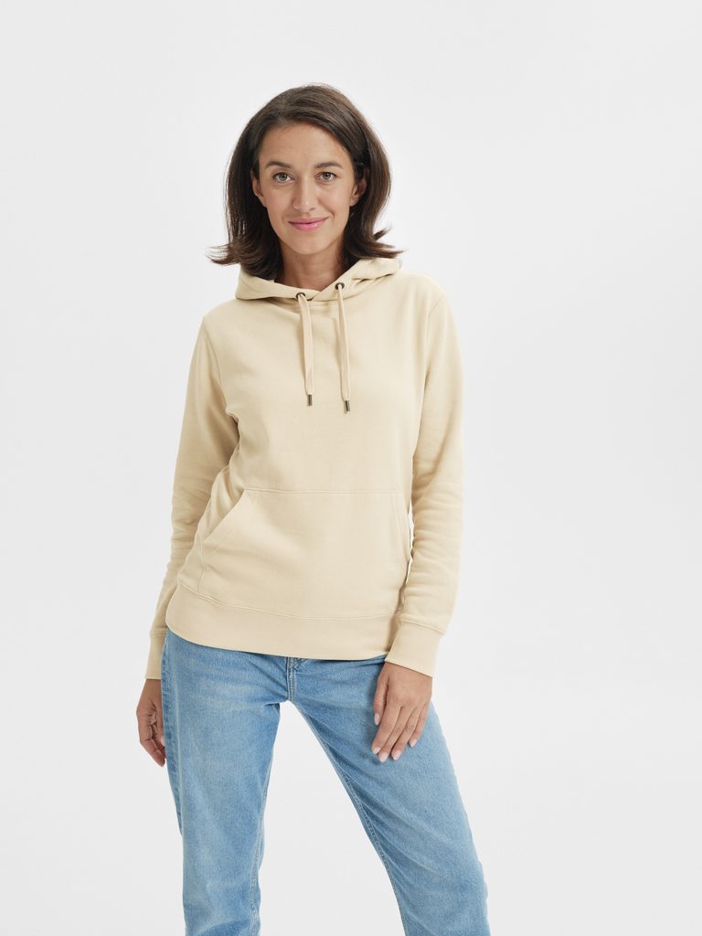 Dámská mikina s kapucí má oblíbenou nakládanou kapsu ve stylu klokanky na předním dílu. Spodní lem a manžety rukávů z žebrového úpletu s 5 % elastanu. Vnitřní část průkrčníku je začištěná tkanou páskou. Projmutý střih. Díky svému materiálu a pestrým barvám se hodí jak na každodenní nošení, tak i na sportovní aktivity. Počesaná vnitřní strana Vám dopřeje teplo a pohodlí v každé situaci a elastan v žebrovém úpletu zajistí, že lemy drží svůj tvar a nevytahují se. Pro ještě větší pohodlí je kapuce s podšívkou a na stažení šňůrkou. Mikina je vhodná pro běžné nošení i aplikaci potisku a výšivky. Gramáž 320 g/m².