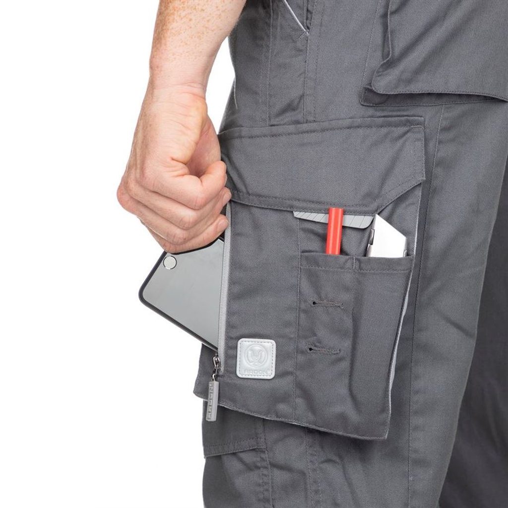 Příjemné a prodyšné pánské montérky s laclem se vyrábí z odlehčeného materiálu, takže jsou velmi pohodlné do teplých letních dnů i vytápěných vnitřních prostor. Mají ergonomicky tvarovaný štíhlý comfort fit střih, díky kterému skvěle padnou na tělo, kopírují postavu při práci a umožňují maximální komfort pohybu. Přestože je materiál lehký a má sníženou gramáž, keprová tkanina je zároveň pevná a pohodlná na nošení. Pas je pružný s integrovanou gumou, aby se kalhoty dobře nosily. Mají také zdvojená kolena s kapsou na nákoleníky pro práci v kleče a pružné šle s plastovými sponami pro rychlé nastavení délky. Praktické je i velké množství kapes - 2 přední průhmatové, 2 zadní kryté patkami, velká průhmatová kapsa na levé nohavici krytá patkou, zipová kapsa na mobil do velikosti 5,6'', kapsa na odlamovací nůž, tesařské tužky a šroubovák, na pravé nohavici kapsa na skládací metr, šroubovák a odlamovací nůž, průhmatová kapsa na laclu s patkou na suchý zip a vnitřní náprsní kapsa na zip. Pro lepší viditelnost a vyšší bezpečnost jsou kalhoty vybavené reflexními paspulemi na předním i zadním dílu.