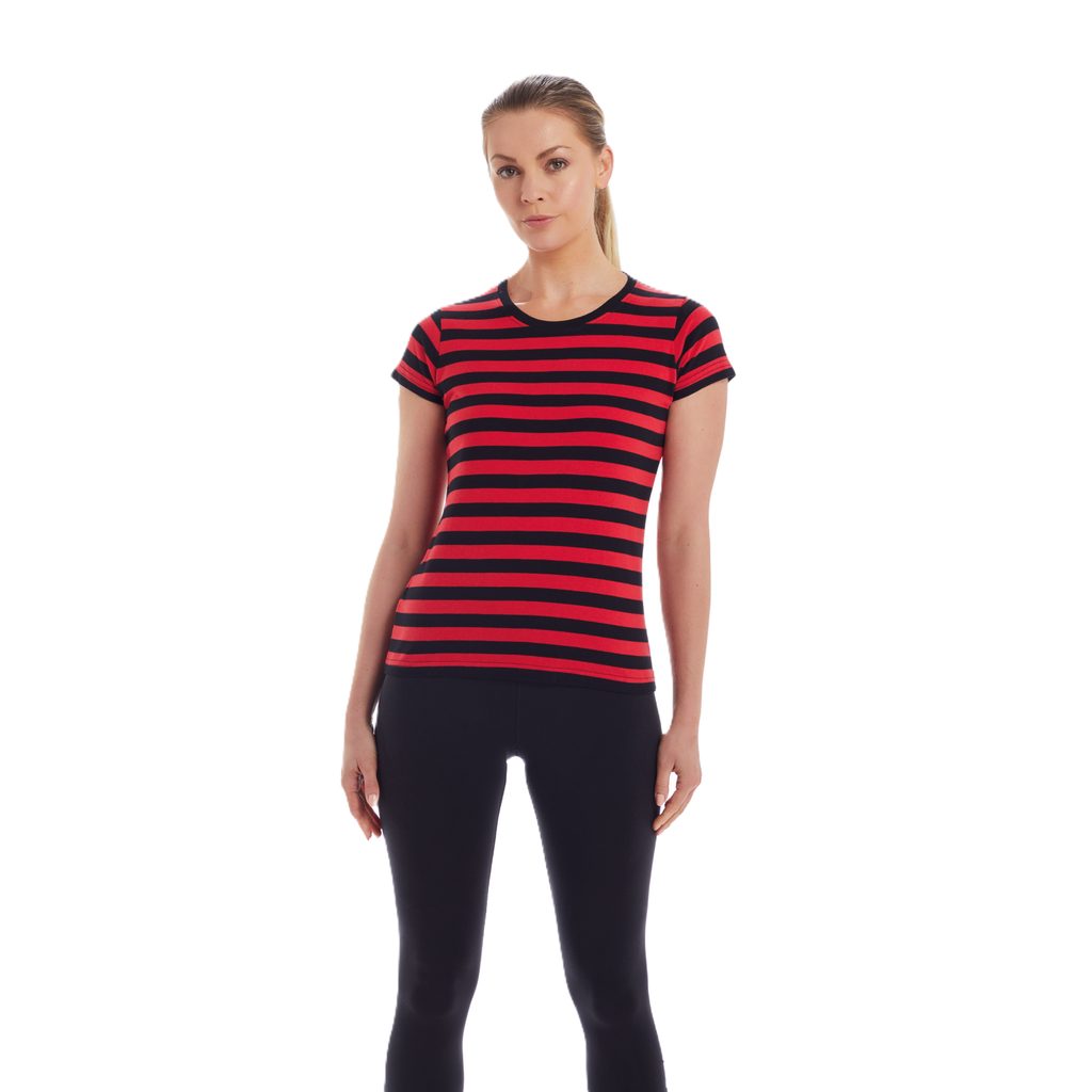 Pohodlné dámské pruhované tričko vyrobené z kvalitní česané bio bavlny. Materiál je velmi jemný, hladký a příjemný na dotek. Tričko má klasický střih s postranními švy a je v pase mírně projmuté pro zvýraznění dámské siluety. Má kulatý výstřih s jemným úzkým žebrováním a zpevňující páskou, díky…