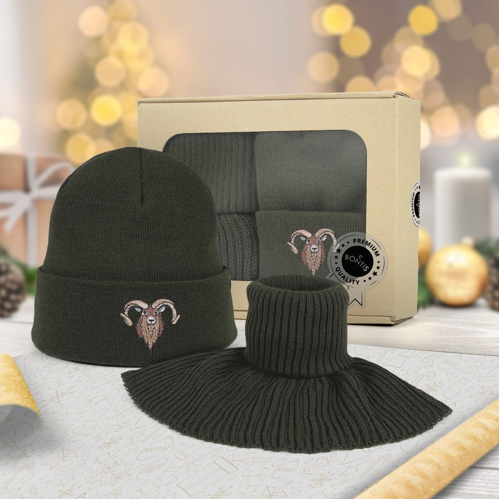 Dárkové balení: Čepice s výšivkou pro myslivce a pletený nákrčník Muflon