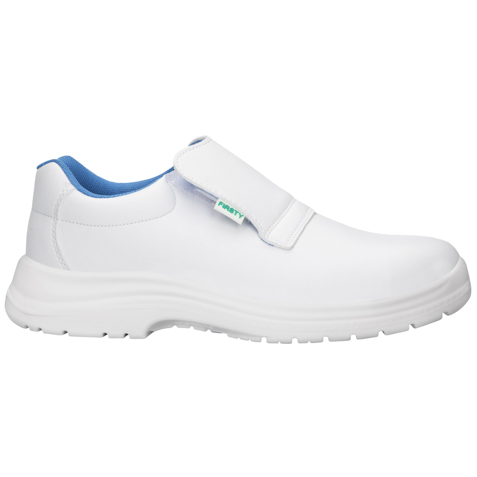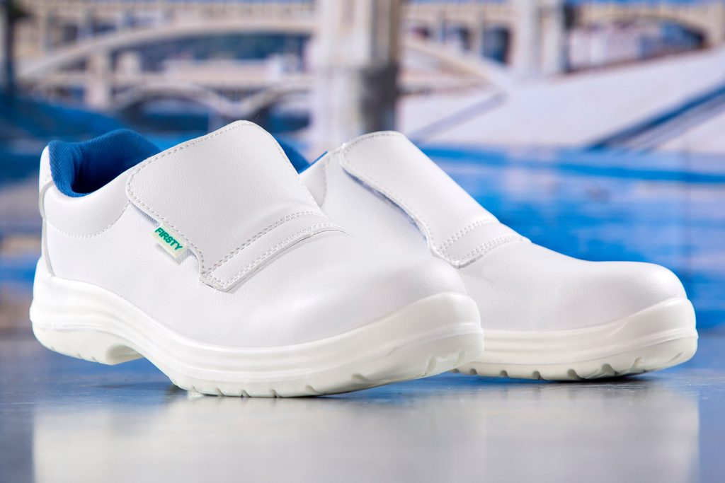 Bílé bezpečnostní mokasíny s ocelovou špicí vhodné do zdravotnictví a potravinářského průmyslu. Svršek je vyroben z pratelného mikrovlákna povrstveného PU vzhledu kůže s hydrofóbní úpravou, podešev je polyuretanová. Uvnitř boty je prodyšná textilie, která zajišťuje absorpci vlhkosti. NORMA: EN…