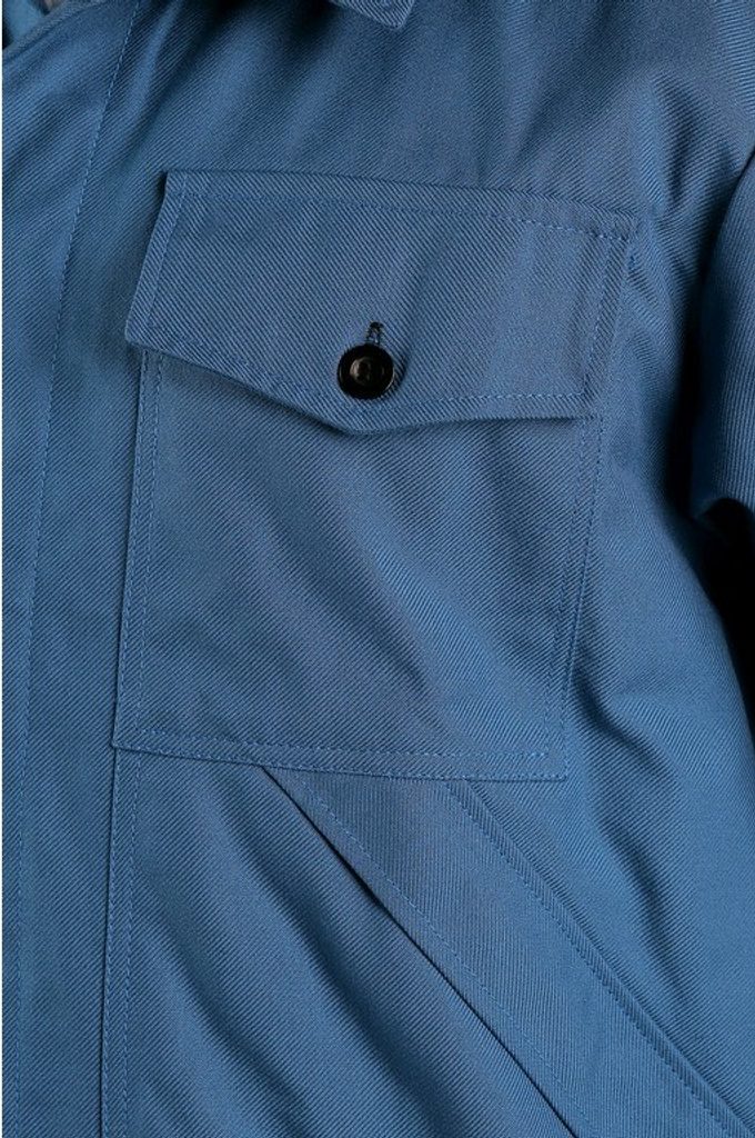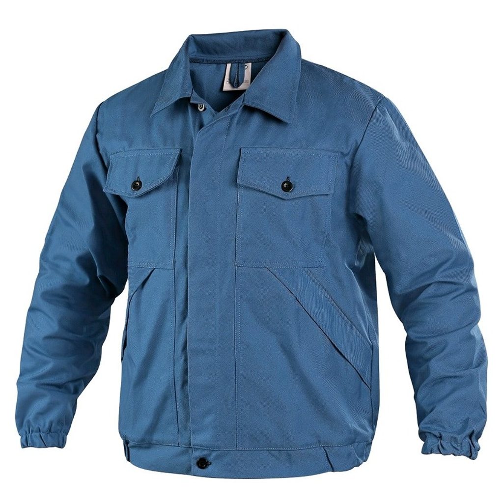 Blůza je vyrobená ze 100% odolného polypropylenu, který zajišťuje bezpečnost během práce. Má kryté zapínání na knoflíky a manžety rukávů jsou pružné. Na bocích v oblasti pasu jsou gumy pro lepší obepnutí těla. Na přední straně se nachází dvě kapsy, které se zapínají na knoflík.