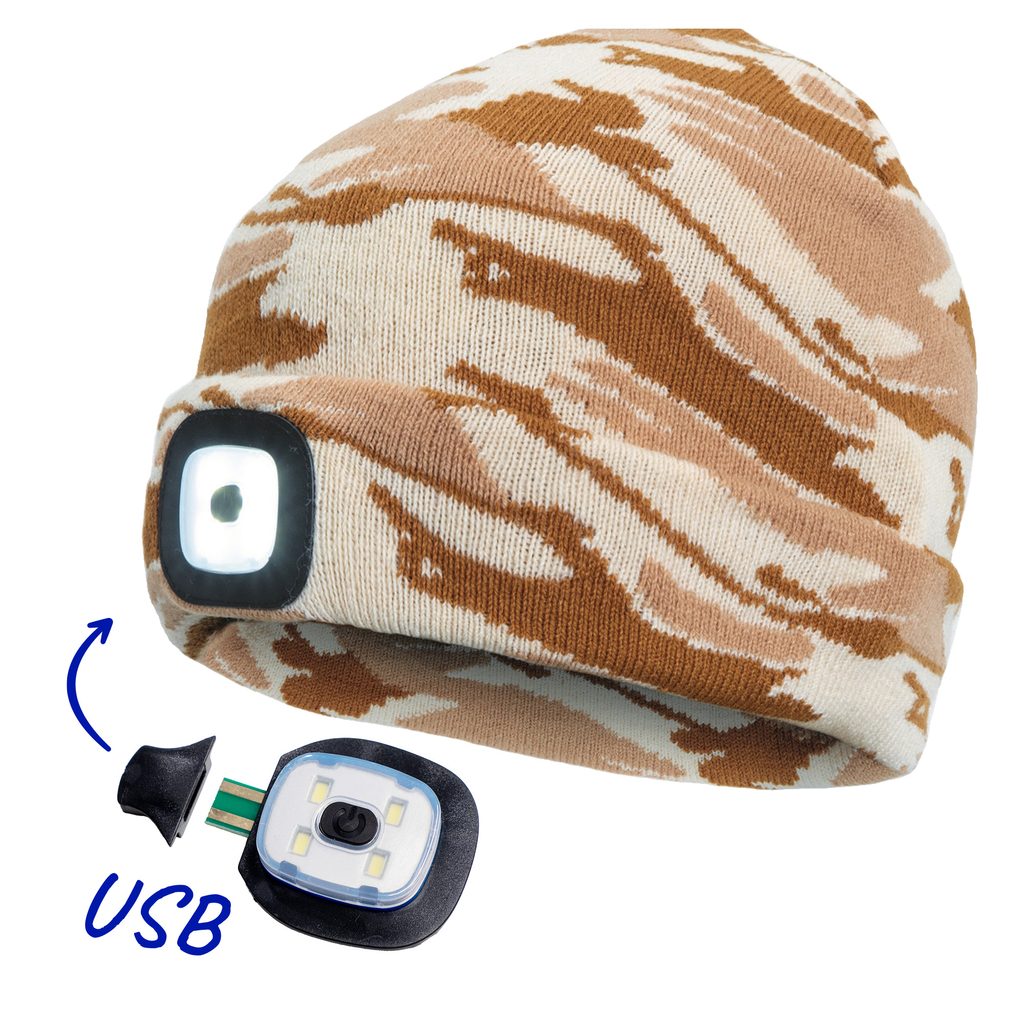 Klasická pletená zimní čepice vás překvapí svým praktickým využitím díky integrované LED svítilně. Ta má 3 funkce svícení. Svítivost lampičky je 150lm. Je snadno vyjímatelná a dá se dobít přes USB konektor. Nabíjecí výkon je 0,5W, nabíjecí napětí 5V, nabíjecí proud 200mAh a jmenovitý výkon 1W. Díky ní si můžete posvítit a přitom si udržet ruce stále volné pro práci.