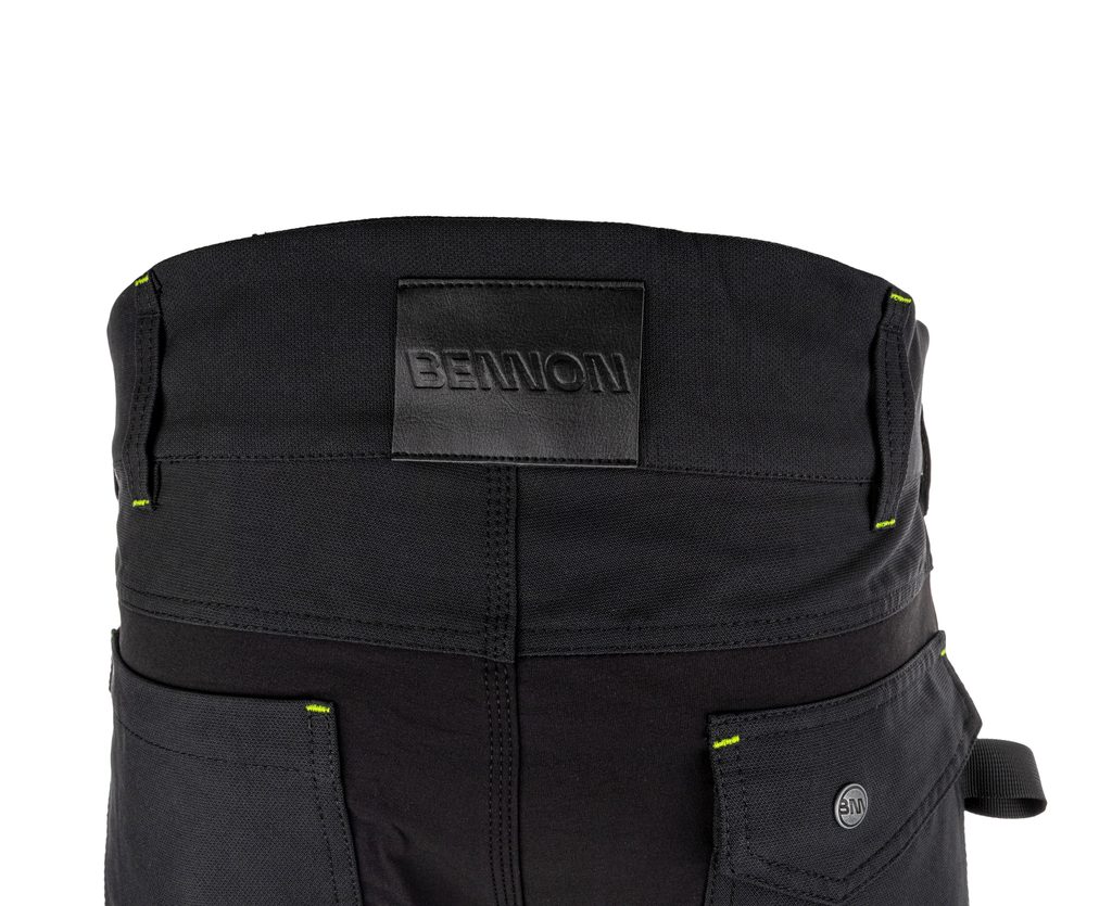 Materiál kalhot je velmi pevný a odolný, přičemž v oblasti sedu a rozkroku je pružný, aby umožňoval pohodlný pohyb při práci. Namáhané části v oblasti kolen jsou zesíleny materiálem Cordura 500D, který je známý svou mimořádnou odolností vůči oděru a mechanickému poškození. Kalhoty mají také kapsy na chrániče kolen.