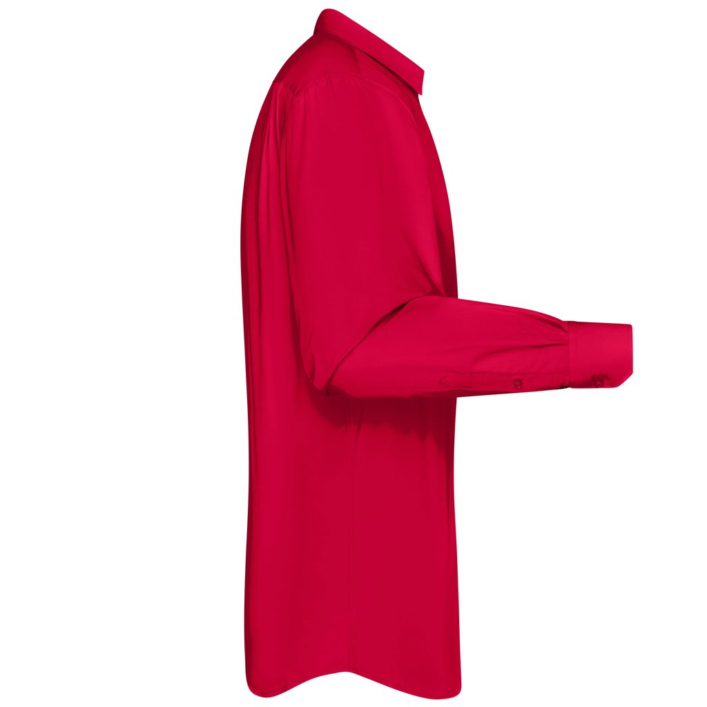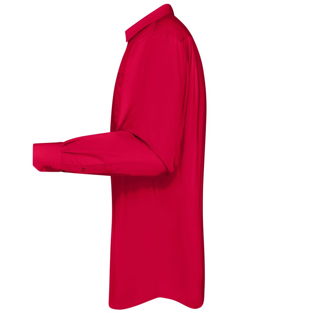 Klasická pánská košile s dlouhým rukávem v běžném střihu je příjemná na nošení díky směsi materiálů. Spodní lem je mírně zaoblený. Popelínová bavlna s úpravou easy care zaručuje snadné žehlení košile. Košile je lehce vypasovaná, má náprsní kapsičku a záhyby na zadním sedle.