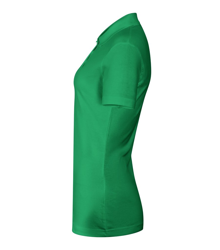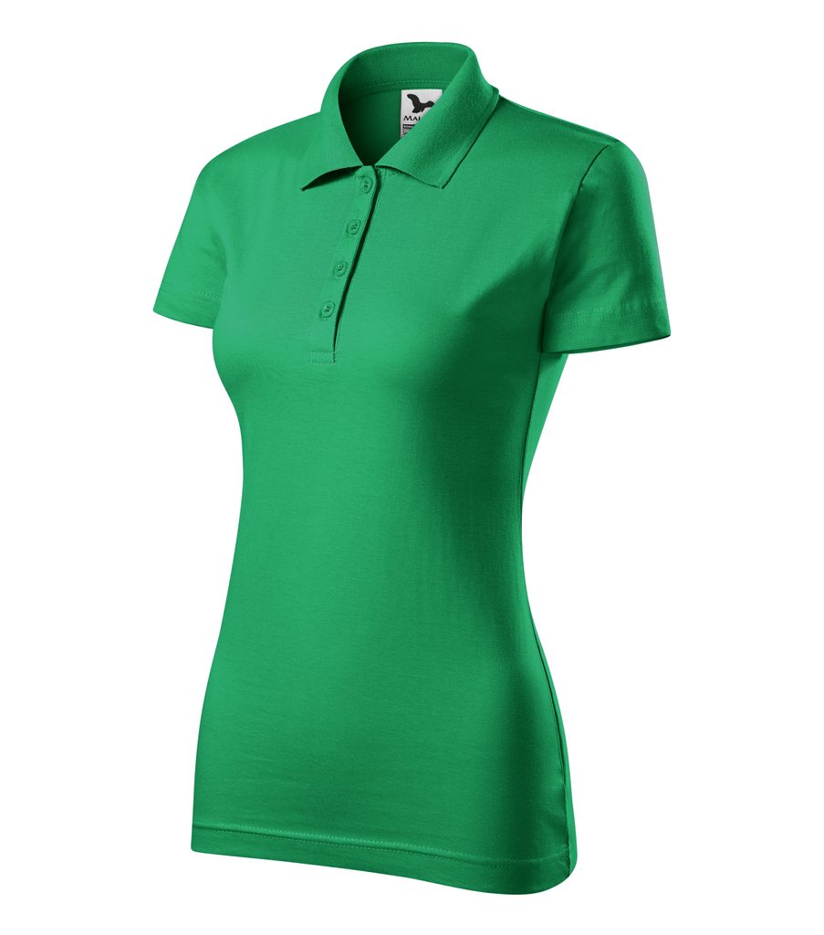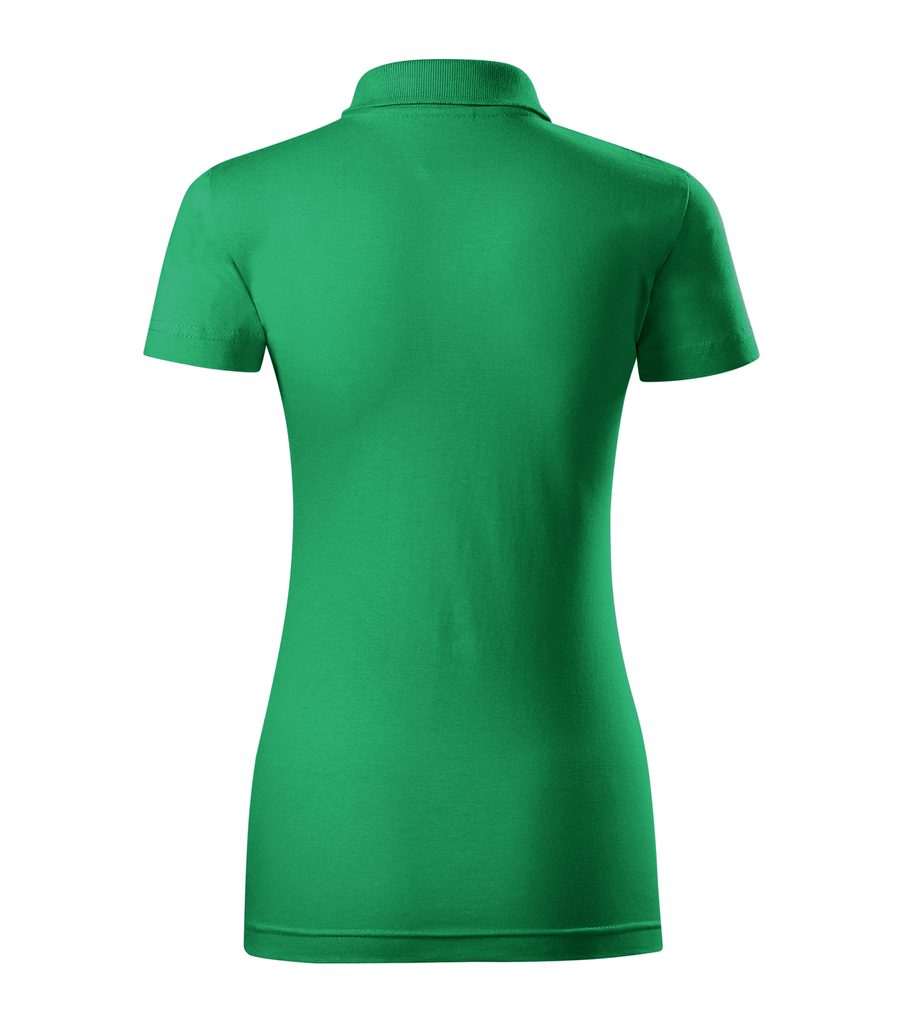 Dámská reklamní polokošile s krátkým rukávem z hladkého úpletu, nově se silikonovou úpravou. Má límeček z žebrového úpletu a ramenní švy zpěvněné páskou. Léga s čtyřmi knoflíčky v barvě materiálu. Vnitřní část průkrčníku je začištěná páskou z vrchového materiálu. Projmutý střih s bočními švy zvýrazňuje dámskou siluetu. Vyšší gramáž 180 g/m².