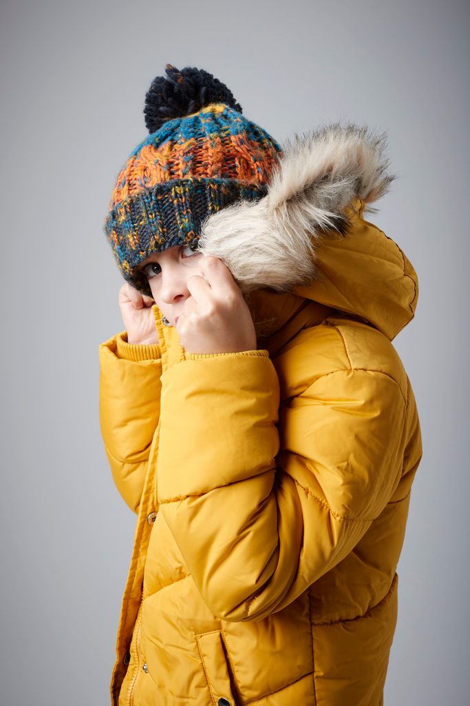 Barevná pletená čepice s bambulí je perfektním a stylovým zimním doplňkem. Má široký lem s bambulí v odpovídající barvě. Čepice je uvnitř zateplená hřejivou čelenkou. Design čepice tvoří čtyři barevně melírované pruhy. Čepice je upletená z měkké a robustní mnohobarevné příze a má elegantní copánkový vzor.