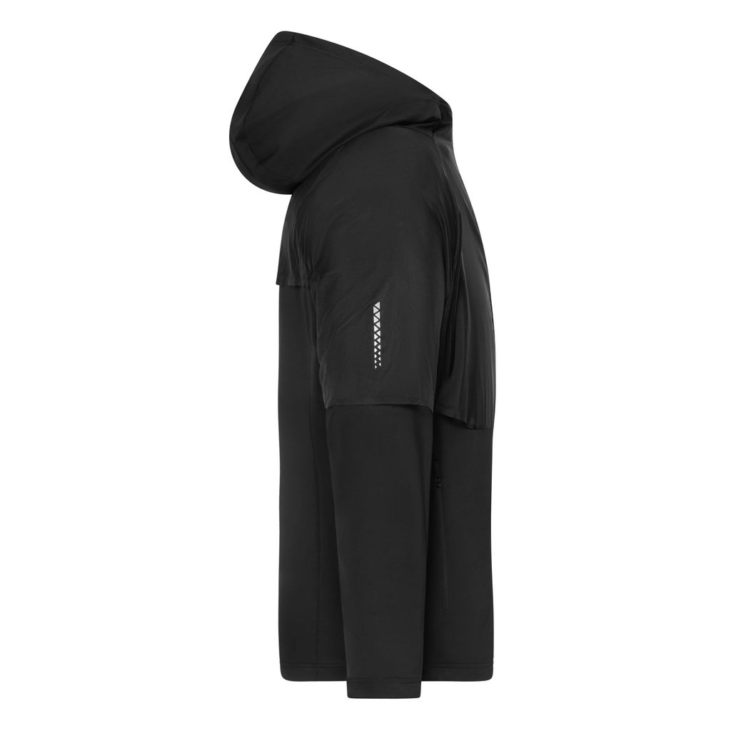 Zapínání na zip s ochranou brady chrání krk před podrážděním a přiléhavá kapuce poskytuje ochranu proti chladu a větru. Praktické boční kapsy se zipy umožňují bezpečné uložení drobností. Reflexní potisk na zádech a rukávech zlepšuje viditelnost za snížené viditelnosti nebo ve tmě.