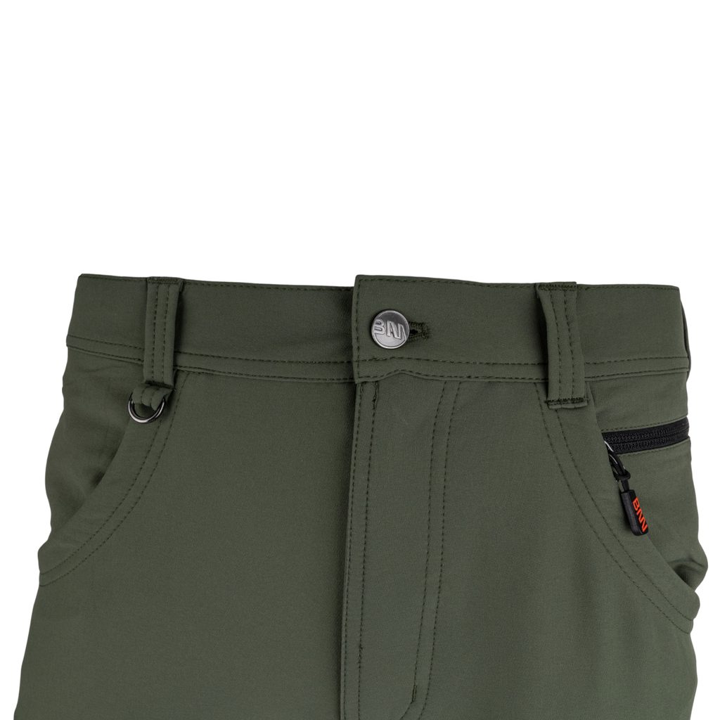 Nejvíce namáhaná místa v oblasti rozkroku a na vnitřní straně nohavic jsou zesílena kvalitním trojitým prošitím, které výrazně zvyšuje jejich životnost. Praktickým detailem je také nastavitelná šířka nohavic, takže si kalhoty můžete přizpůsobit přesně podle potřeby.