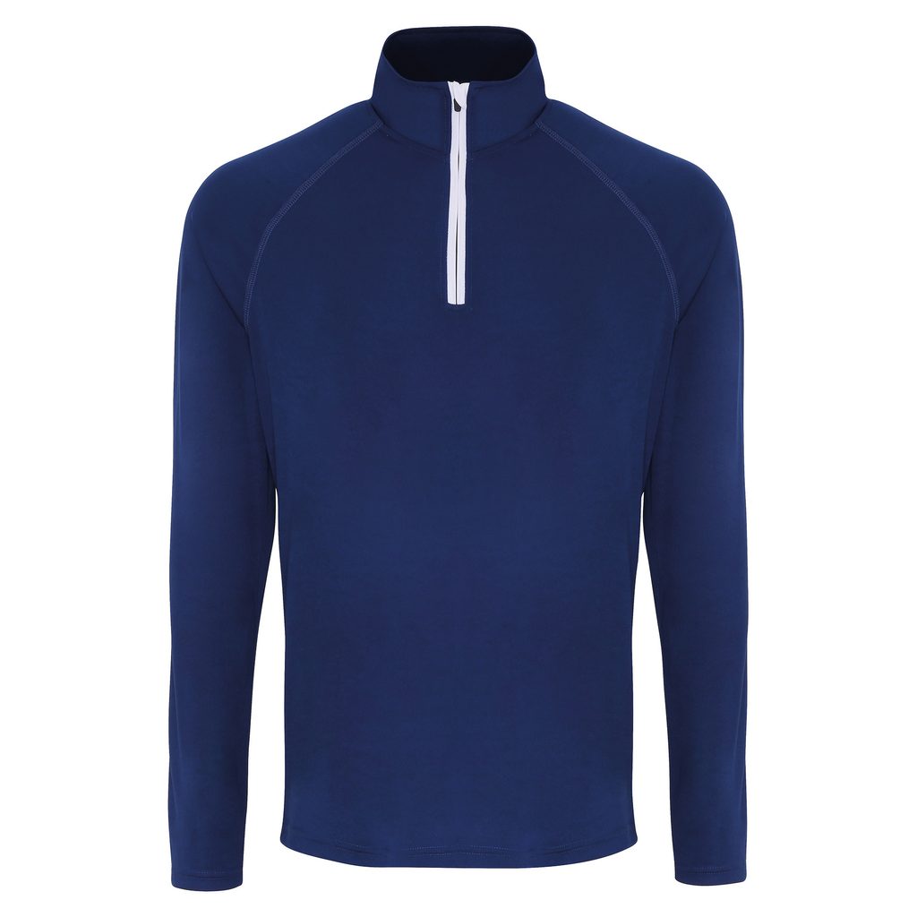 Pánské tričko s dlouhým rukávem a 1/4 zipem Tmavě modrá / bílá