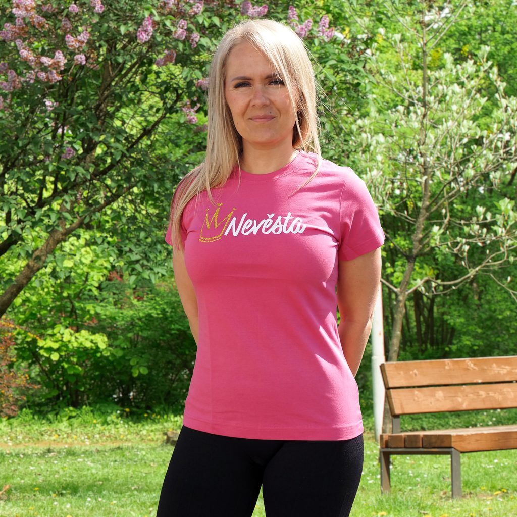 Tento večer je jen jedna královna - a to jsi ty! Tričko se třpytivou zlatou korunkou a stylovým nápisem „Nevěsta“ dá všem jasně najevo, kdo je dnes nejdůležitější. Tak obleč tohle tričko, nasaď korunku a ukaž světu, že se jde slavit ve velkém stylu. Ideální volba na rozlučku se svobodou, svatební víkend i focení s družičkami.
