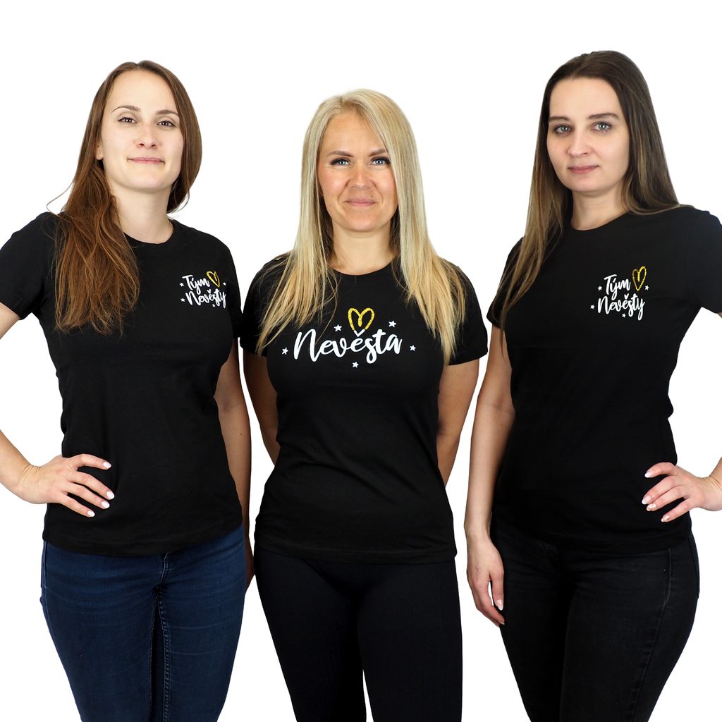 Dokonalý tým – přesně to vystihuje toto tričko. Jemný a elegantní design se zlatým třpytivým srdcem a nápisem „Tým nevěsty“ ukáže, že patříte k těm nejbližším, kteří slaví tenhle výjimečný moment po boku nevěsty. Ať už vás čeká nezapomenutelná rozlučka se svobodou nebo poklidný svatební víkend plný…