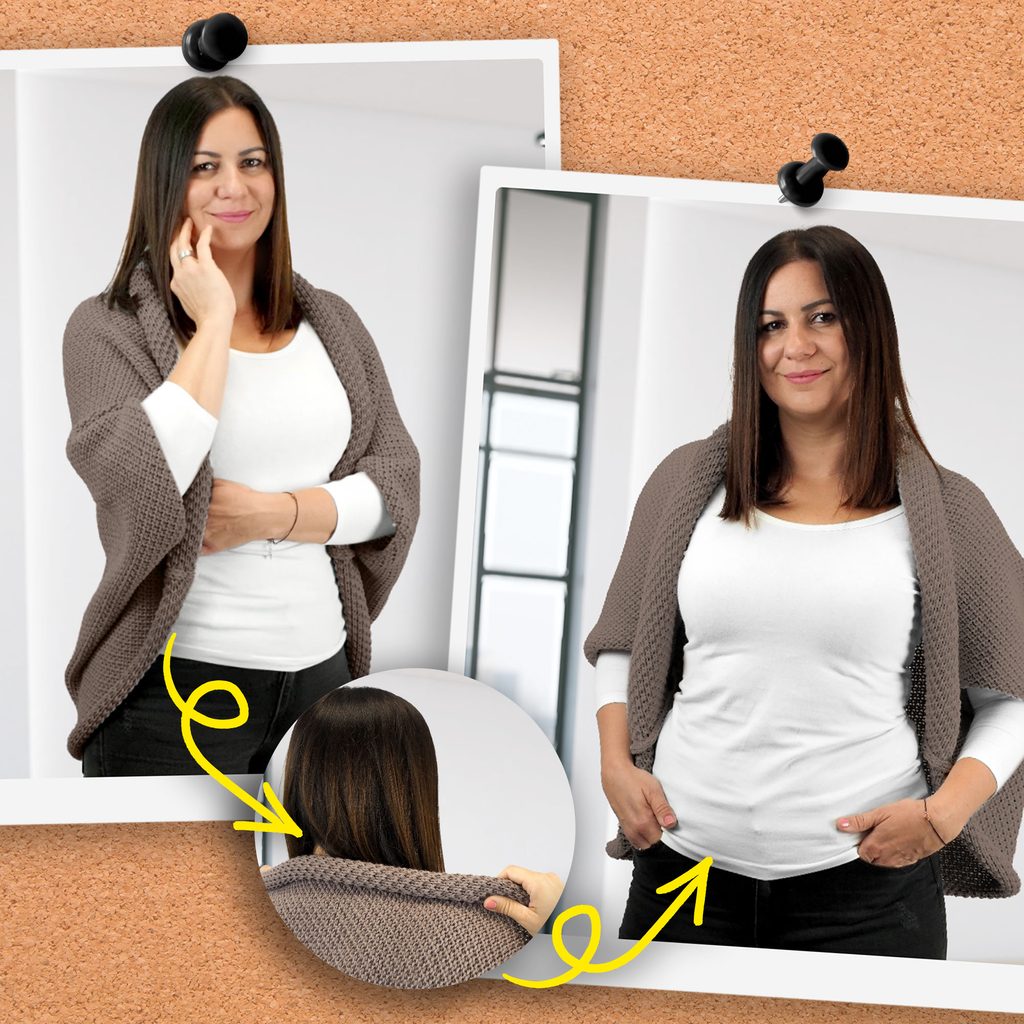 Hřejivý kardigan, který díky svému nadčasovému designu a univerzální velikosti, sluší každé ženě. Kardigan má variabilní délku, kterou lze snadno nastavit jednoduchým narolováním za krkem. Je doplněn hřejivou čelenkou a dohromady tvoří dokonalé spojení pohodlí a stylu.