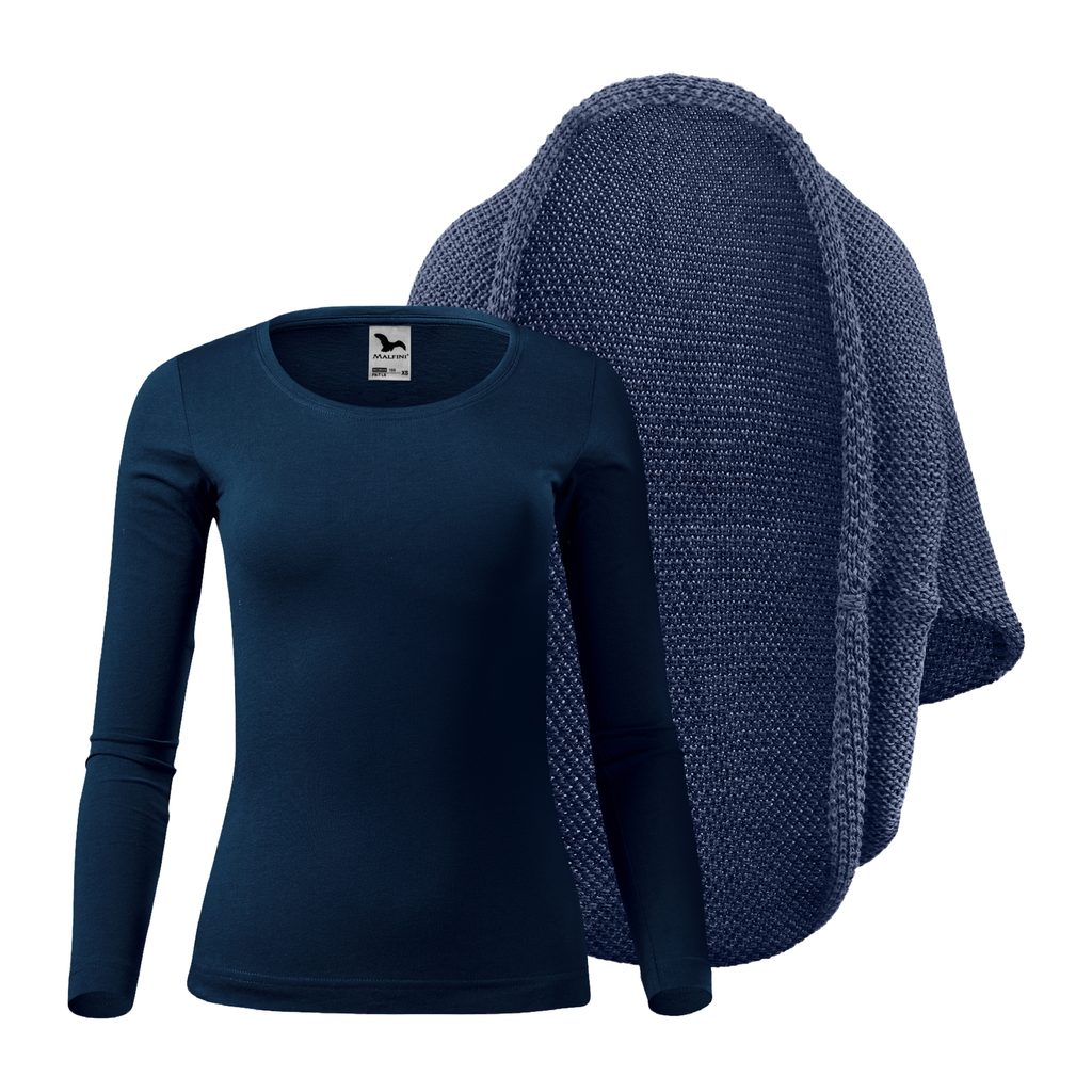 Dámský set: Pletený kardigan a tričko s dlouhým rukávem Džínový melír / námořní modrá