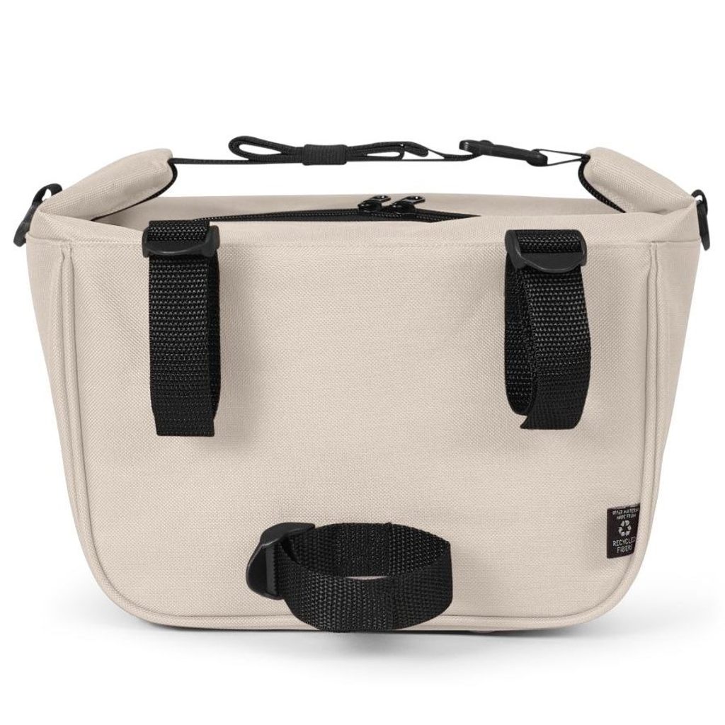 Pohodlí při nošení zajišťuje odnímatelný a délkově nastavitelný popruh, který se dá na jedné straně zcela odepnout a můžete si ho upravit podle potřeby. Dalším praktickým detailem jsou úchyty na zadní straně, díky kterým tašku snadno upevníte na řídítka kola. Pružný pásek popruh udrží na místě, což oceníte zejména při cestování nebo jízdě na kole.