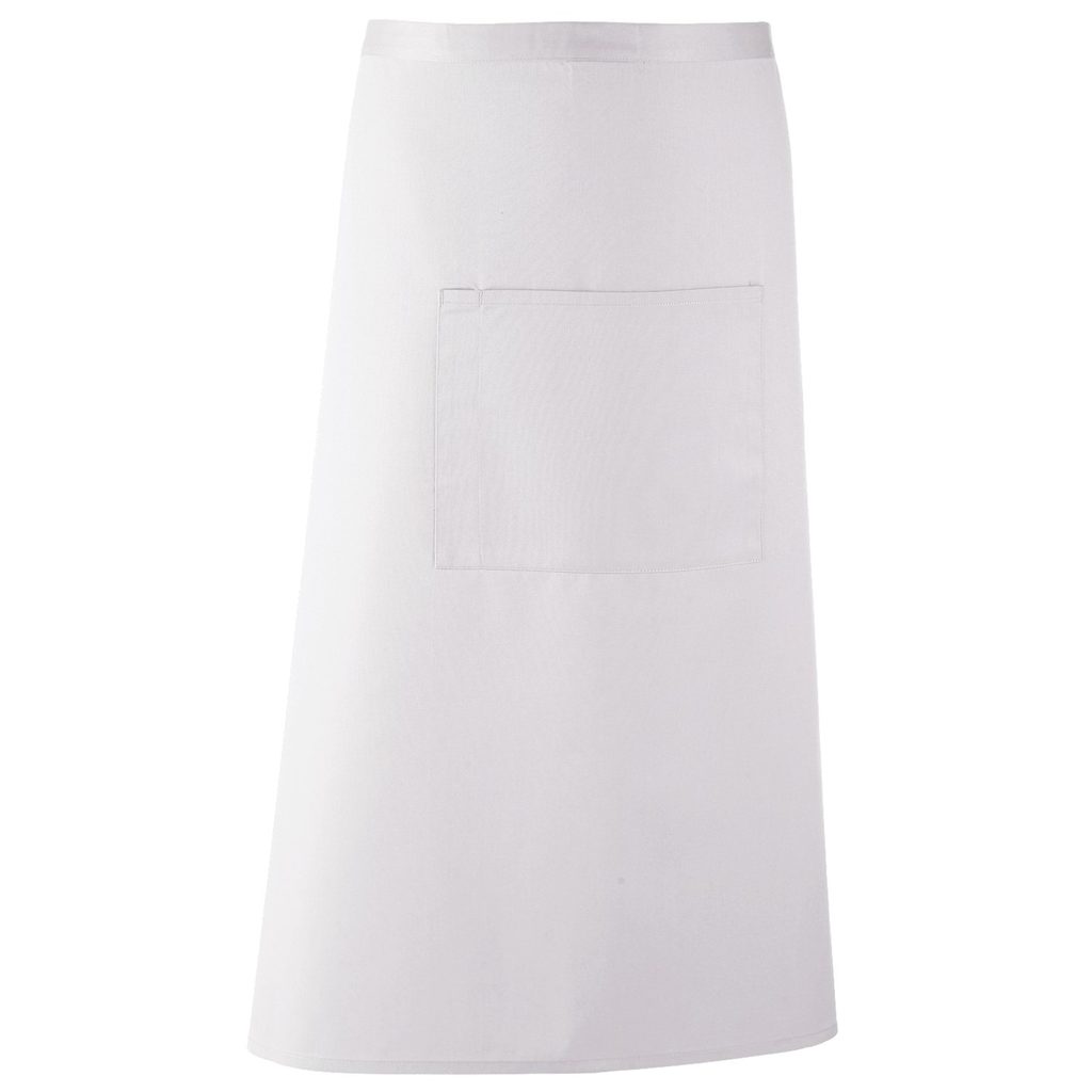 Dlouhá zástěra do pasu s kapsou Bílá